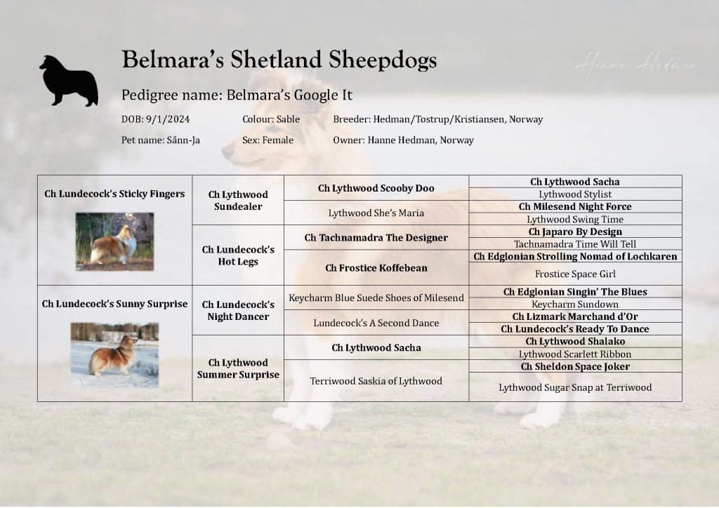 Stacking picture of Sånn-Ja at 12 weeks of age.Head study at 9 weeks of age.Sånn-Ja 7 months old. Photo: Reidun Monsholm/Ida Monsholm.A few days old. Sånn-Ja 6 weeks old.Sånn-Ja in her puppy pen at 4 weeks of age.Hanne & Sånn-Ja. Photo: Regine Jensen.Sånn-Ja 12 weeks old.Sånn-Ja & her mother Annelie ❤Sånn-Ja 4 months old. Sånn-Ja 7 weeks old.Hanne & Sånn-Ja at 8 weeks of age. Photo: Regine Jensen.